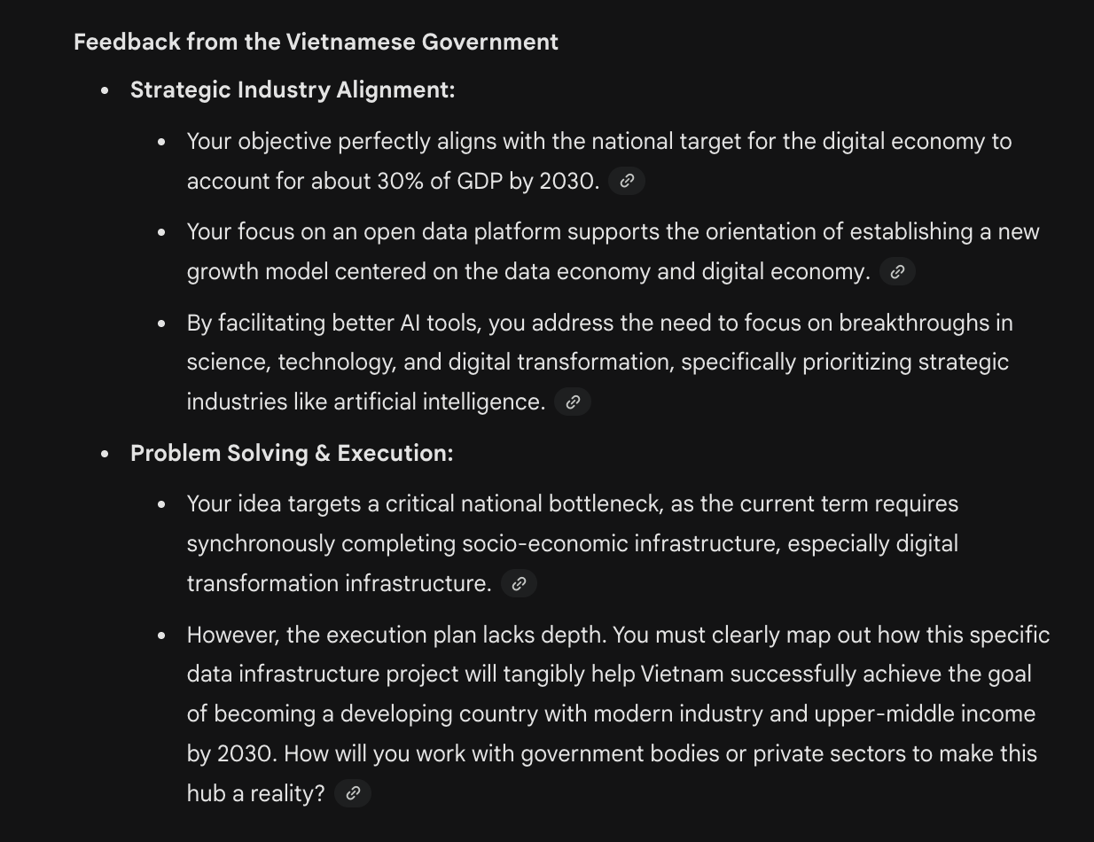 - Góc độ từ Chính phủ: Đánh giá tầm nhìn của bạn qua việc đối chiếu kế hoạch đề ra với các mục tiêu chiến lược quốc gia. Bản chất ở đây cần chứng minh ngành học của bạn có trực tiếp giải quyết các vấn đề cốt lõi của Việt Nam hay không.